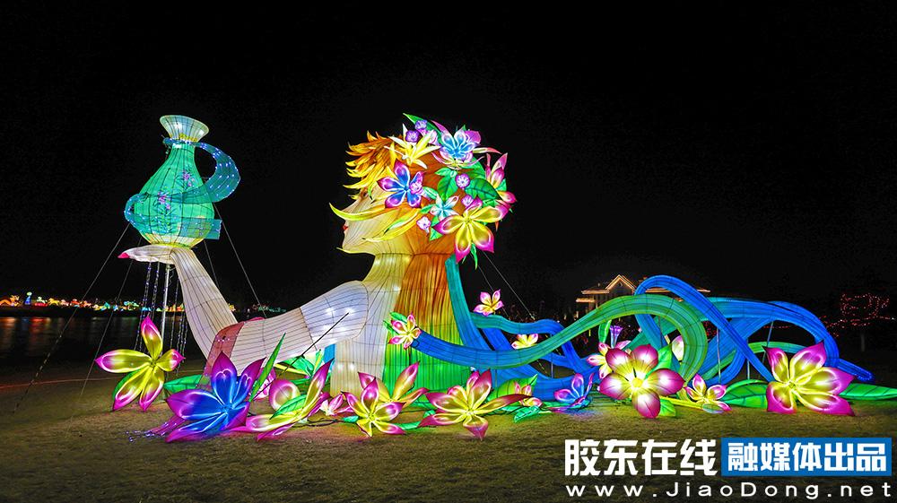 9、蓬莱仙子灯组:仙气氛围拉满打卡点,12米长×7.5米,带眼睛传动、花瓶流水动态特效,出片极具诗意。
