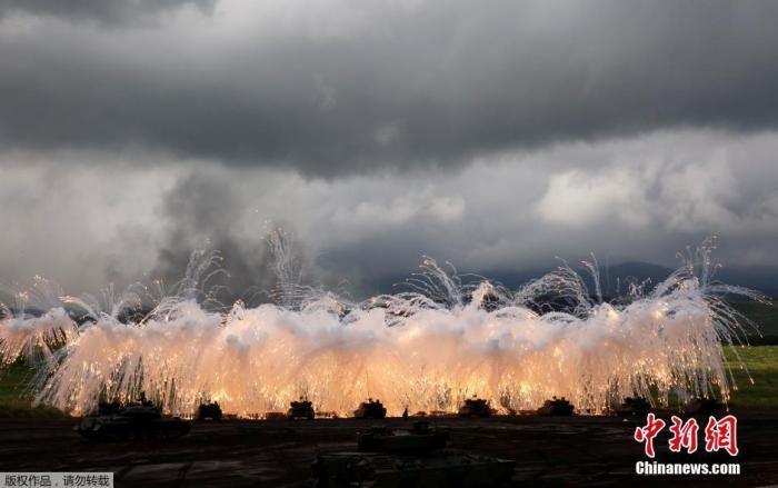 资料图:日本自卫队装甲部队进行实弹射击训练。