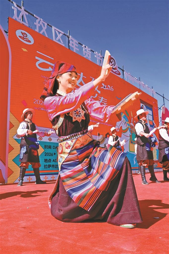 晨光初现,山间的雾气还未完全消散,拉萨市达孜区全民健身体育场却已人声鼎沸,以“云上达孜 马跃新春”为主题的2026年拉萨市达孜区第四届年货节暨便民生活节在此拉开帷幕。