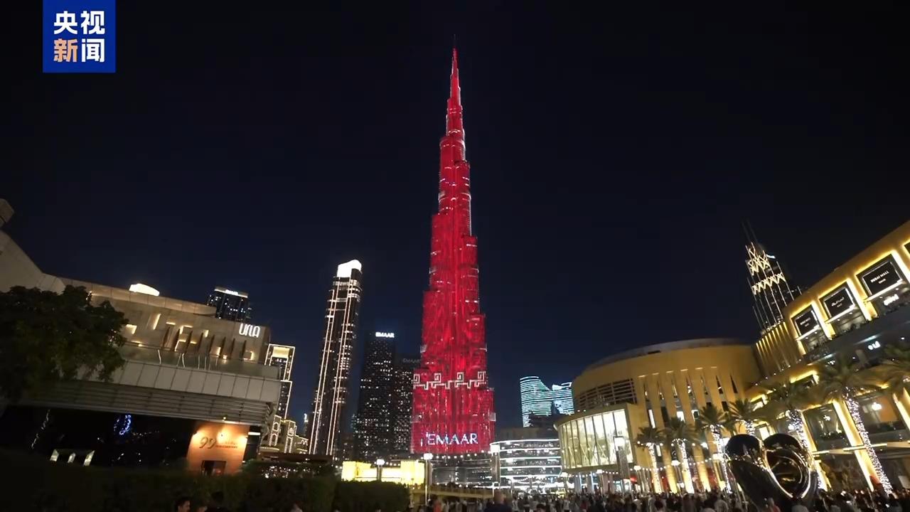 春节前夕,2026年中央广播电视总台新春灯光秀在位于阿联酋迪拜的世界最高楼——哈利法塔璀璨绽放。这已是总台连续第七年在新春佳节到来之际点亮哈利法塔。