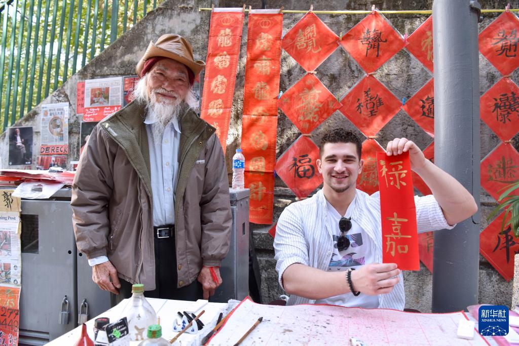 “楼梯街早就是香港挥春的聚集地,如今这里的墨香越飘越远。”萧嘉豪说,每年元旦前后挥春档陆续开张,一直写到农历初七,有时会为市民游客特意延档。有人来求一幅“阖家幸福”,有人为孩子写一幅“金榜题名”,不少外国友人则让他把亲戚朋友的英文名都翻译成中文字写在红纸上。