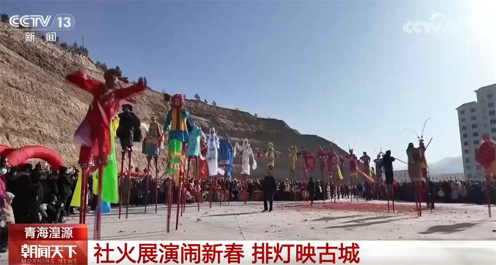 青海湟源:社火展演闹新春 排灯映古城