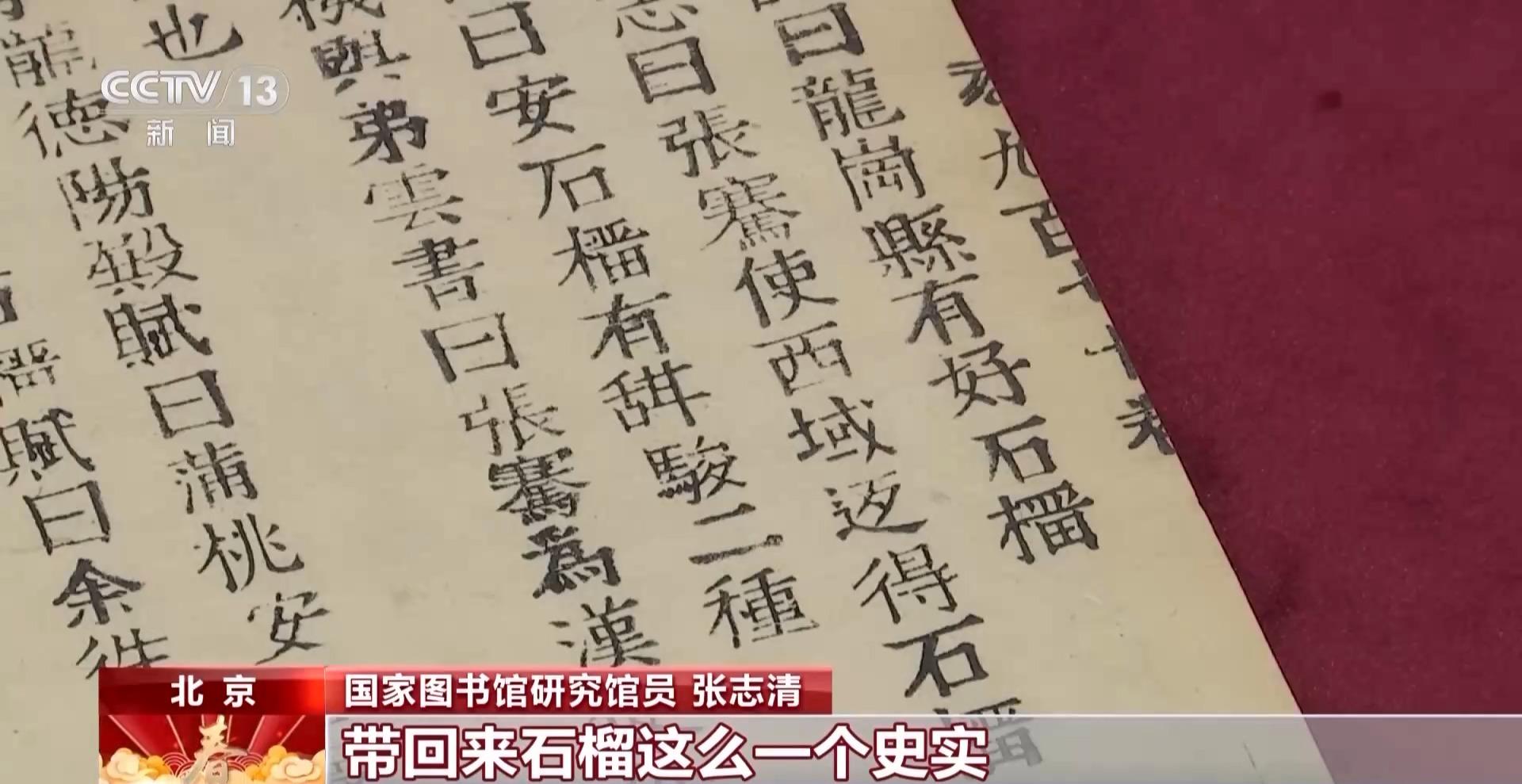国家图书馆研究馆员 张志清:《本草纲目》里记载说是张骞带回来安石榴,所谓“安石榴”就是我们现在说的石榴,就把它的种子带回来,但是《本草纲目》作者李时珍是明代人,再往前还有什么?最早能够在哪记载?