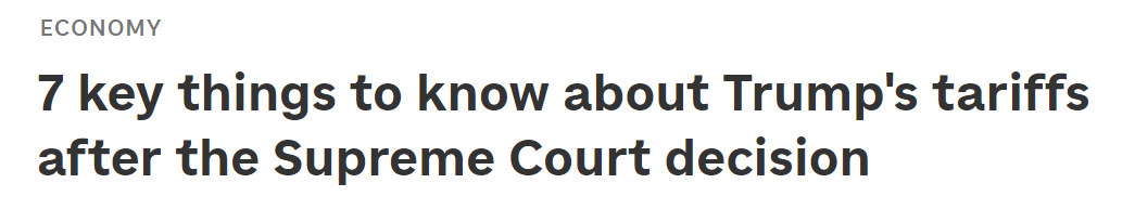 自重返白宫以来,特朗普已对多个贸易伙伴广泛加征关税,但并非所有这些关税措施都在此次联邦最高法院的裁决中。本次裁决涉及的关税是根据美国《国际紧急经济权力法》实施的,约占政府每月征收的所有进口关税的一半。其余关税则是根据其他的法律颁布的,且相关争议或法律诉讼尚未到达联邦最高法院层面。