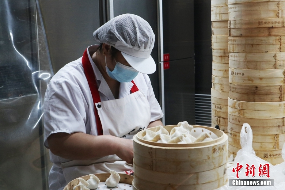 工作人员在包饺子。 苍雁 摄