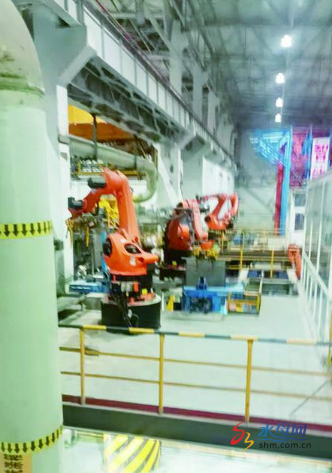 恒邦股份有限公司是一家大型上市黄金企业,随着科学技术的发展,生产车间基本实现了“数控”。走进车间,仿佛踏入了一座充满工业美学的“科幻片场”。红色的安全堆标识醒目,灰色的管道纵横交错,橙红色的机械臂在空中划出精准的弧线……在数百平方米的车间只见一人身着洁净的工装,脚蹬绝缘胶鞋,手持专业的检测棒,正神情专注地穿梭于这些“钢铁巨人”之间。