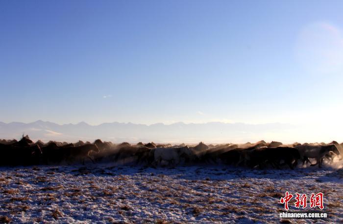 新疆巴音布鲁克草原上的万马踏雪壮景。史玉江 摄