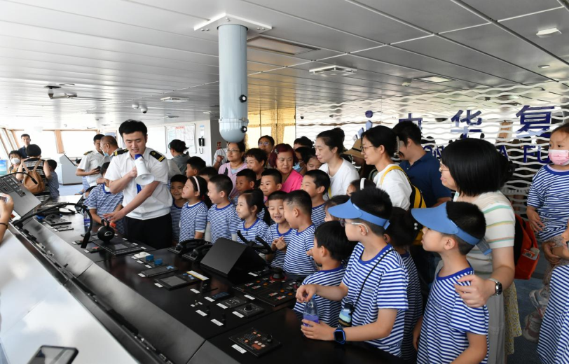 女神节当天,随行儿童可免费体验“小小航海家”研学体验。走进真实驾驶舱,船长叔叔亲自讲授航海知识。