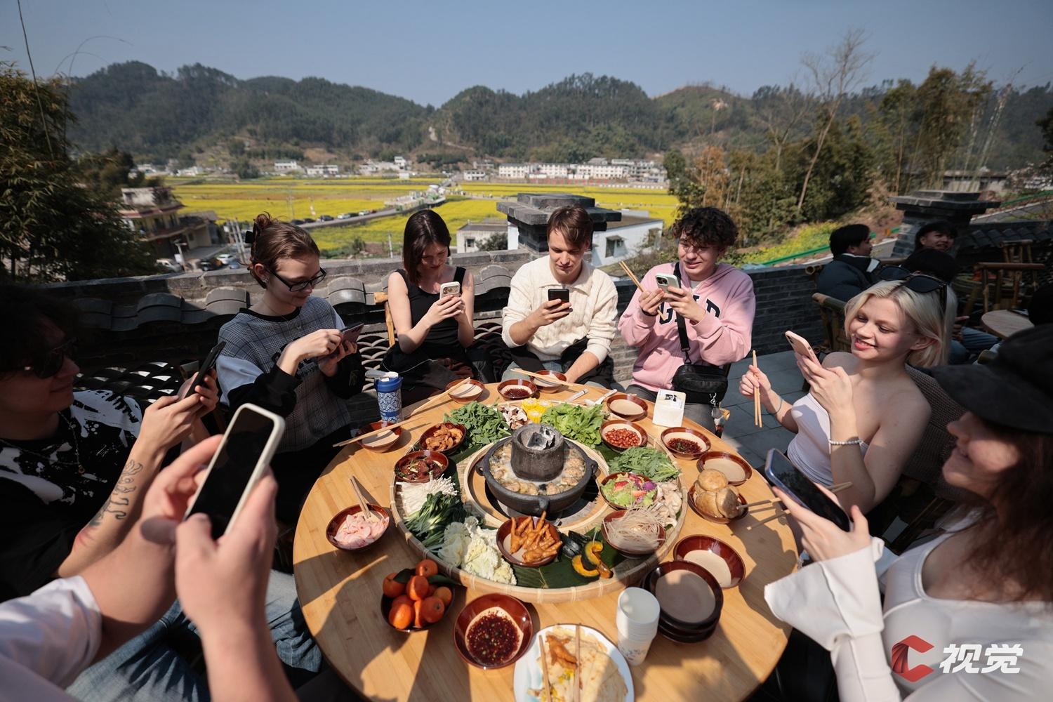 2月21日,宜宾市高县庆岭镇,外国留学生体验省级非遗“川南请春酒”,感受美好温暖的中国年味。