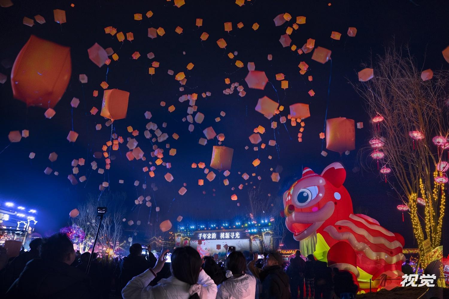 2月17日,遂宁市大英县宋井桃源,千人同放孔明灯,祈愿国泰民安。