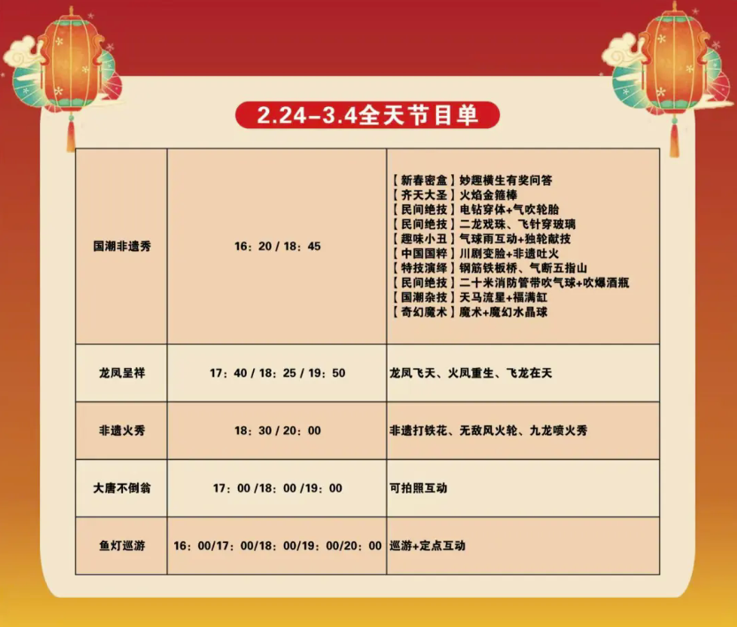 这里不仅有璀璨灯景,更将元宵习俗与特色展演完美融合,让“闹”元宵的氛围感拉满。