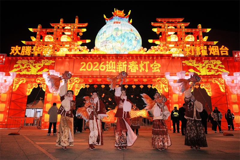 演员们在位于烟台植物园的2026烟台迎新春灯会表演。YMG全媒体记者 唐克 摄