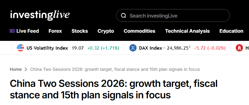 美国知名财经网站Investinglive重点新一年度政府工作报告,该报告通常会设定年度主要目标和政策任务,并最清晰地传递出中央政府的宏观政策取向。