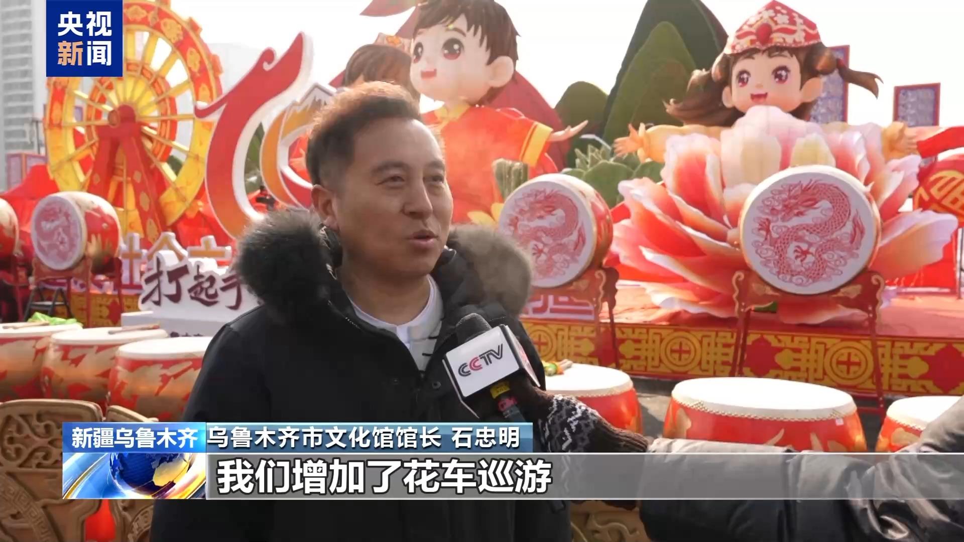 乌鲁木齐市文化馆馆长 石忠明:最大的亮点就是我们增加了花车巡游,花车巡游融合了社火队伍的表演,给市民朋友们展现我们社火的动态美和静态美。
