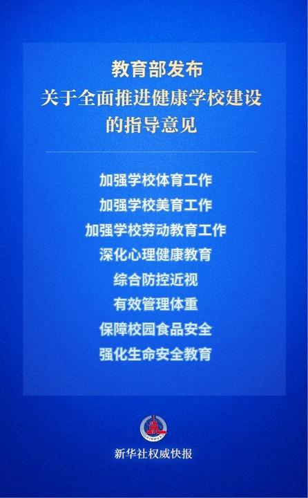近日,教育部印发关于全面推进健康学校建设的指导意见,立足教育强国建设对学生健康成长、全面发展提出的新要求,践行“健康第一”教育理念,全面提高学生健康水平,营造全社会共同关爱学生健康成长的良好环境。