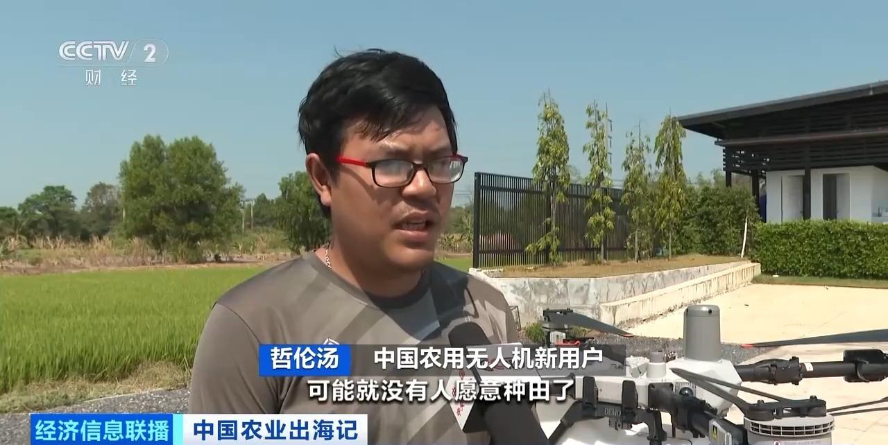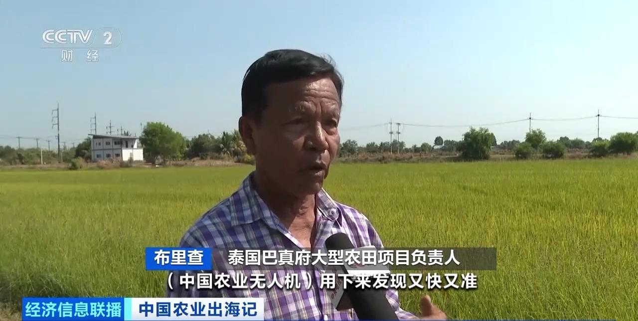 泰国巴真府大型农田项目负责人 布里查:中国农业无人机用下来发现又快又准,而且不会漏喷,几乎是全面覆盖、喷得很细的方式。如果是人工的话,根本没办法知道喷药是不是均匀。