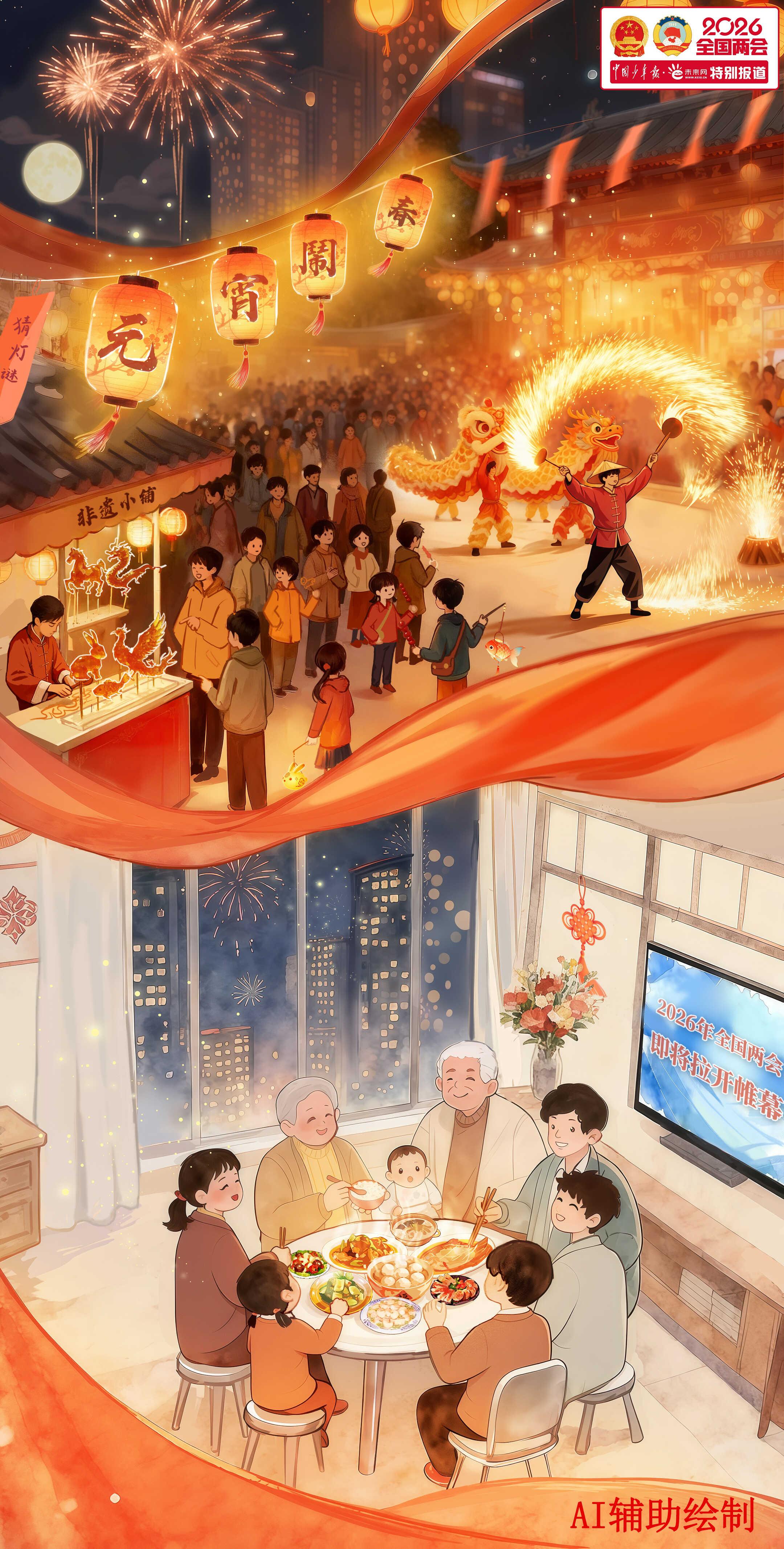 再看元宵佳节与全国两会的“相连”,是时序的巧合,更蕴含时代的深意。当万家灯火与国是商议交相辉映,我们更加深刻地懂得,元宵节的灯火,从来不只是节日的装点,一盏盏亮起的灯背后,是一个个具体的人、一个个真实的家庭。那是务工专列上鼓鼓的行囊,是冰雪乐园里孩子们的笑脸,是老年旅客享受到的便捷服务,是返乡创业青年新开张的店铺……今年春节假期全国国内出游5.96亿人次、国内出游总花费8034.83亿元,创下历史新高的数据,照见的正是这万家灯火的温度。回望“十四五”,经济社会发展主要指标中民生福祉类占比超过三分之一。无论是每年城镇新增就业1200万人以上,还是基本养老保险参保人数达10.72亿人,这些扎实的民生答卷,托举起灯火里的安宁与从容。