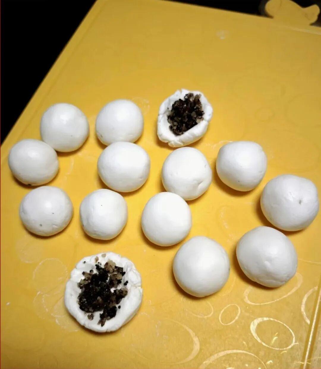 我是采用最原始的方法制皮,将面团捏成小碗状,再举起来透过光亮检查它是否均匀,否则等汤圆下锅后就会从最薄处破口。我将馅料用小勺挖点放进“斗碗”里,然后将上口捏紧实。有几次贪多,量变引发质变,面皮被过量的馅芯撑裂出细缝,啊呀不好“露馅”了。皮和馅的关系,不是“韩信点兵多多益善”,而是相互包容恰到好处。