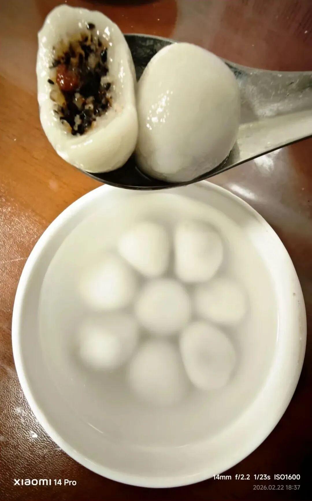 煮汤圆的锅是圆的,舀汤圆的勺是圆的,盛汤圆的碗是圆的。我喜欢圆圆的东西,因为它的感官柔和,感受周全,就像与生俱来富于生命力的物象。吃多少煮多少,当顿吃不了的,放进冰箱冷冻,这也可以说是一道最放心的“预制菜”。