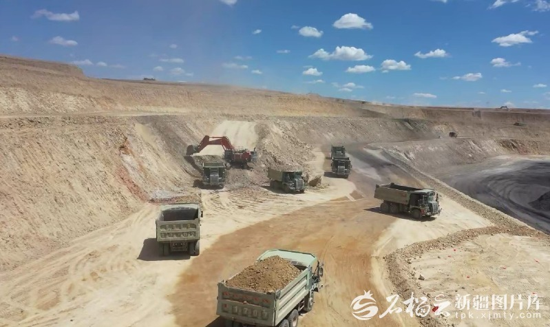 2025年6月,巴里坤哈萨克自治县吉郎德露天煤矿的矿坑里,无人驾驶矿卡与有人驾驶车辆正沿着同一运输线路有序穿梭。张一平摄