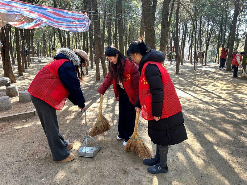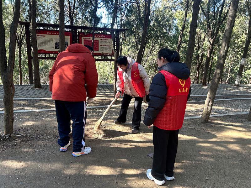 活动现场,党员教师率先垂范,团员青年积极响应。大家手持扫帚、垃圾夹、垃圾袋等工具,分工协作、默契配合,对公园广场、步道、绿化带及卫生死角进行全面清理,认真捡拾纸屑、塑料袋等杂物。党员们以实干诠释初心,团员们在实践中接受教育,红色阵地与志愿行动相融,让国防公园更整洁、更文明。