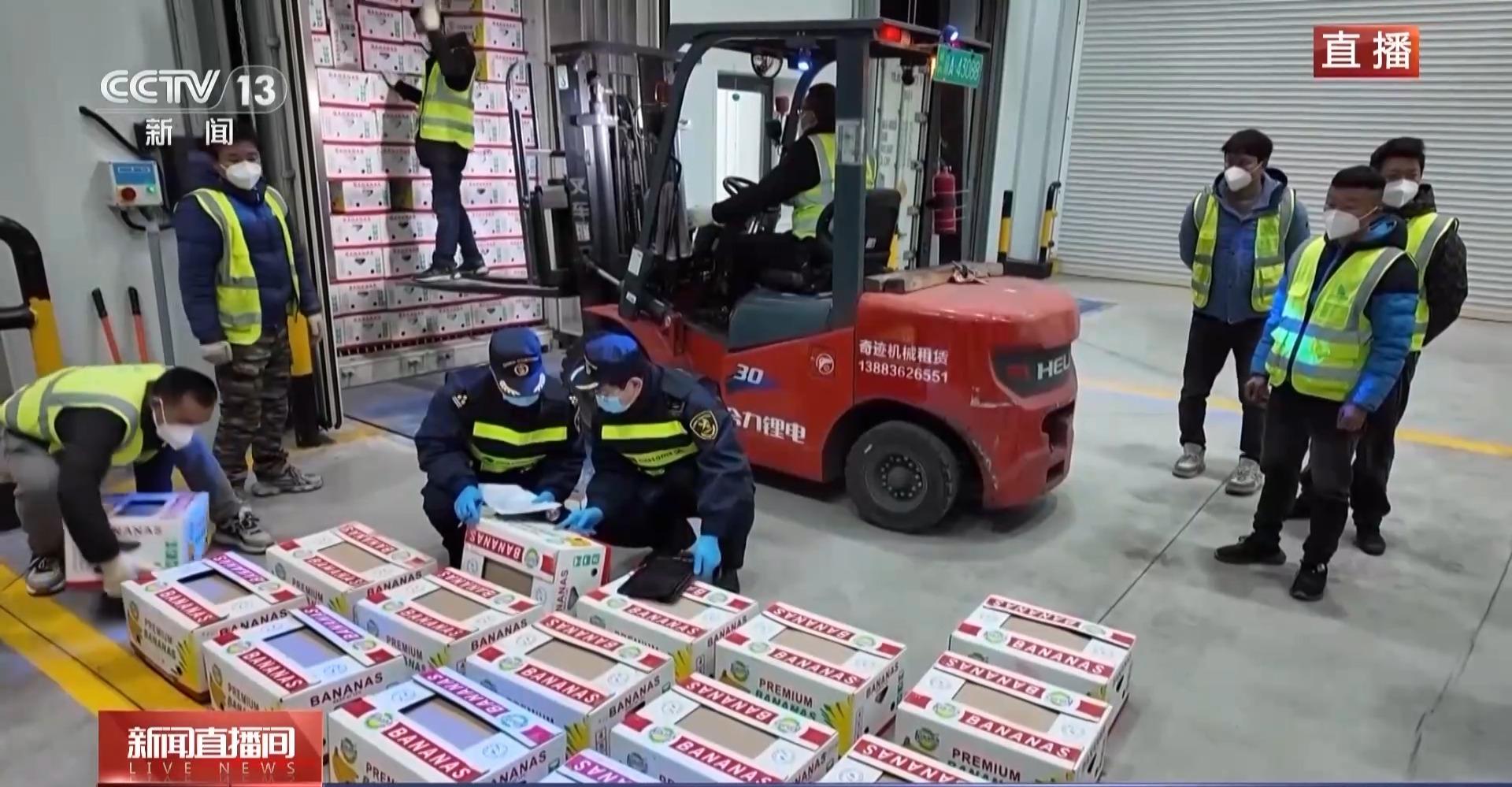 不仅是跨境公路班车,国际铁路联运也有创新监管模式。2026年开年,有一批从老挝过来的80多吨香蕉,通过中老铁路,一路直达运到了这里。