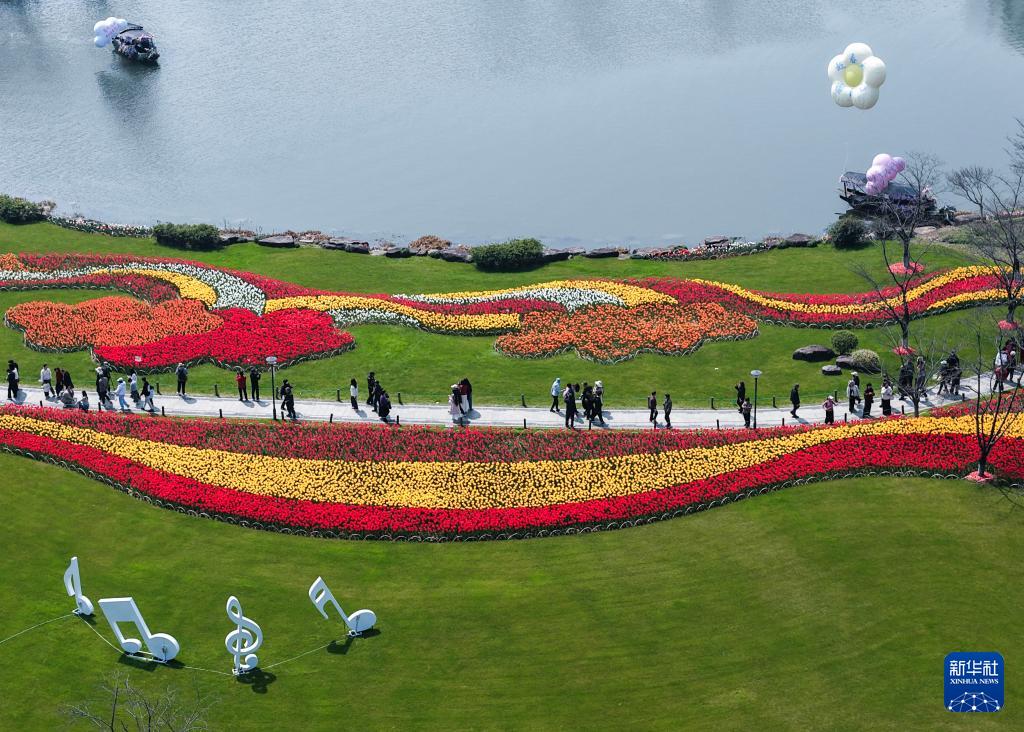3月13日,浙江省绍兴市柯桥区“和美柯桥·2026湖畔花海季”在瓜渚湖水域岸畔启幕,53万多株色彩缤纷的郁金香绽放迎客。