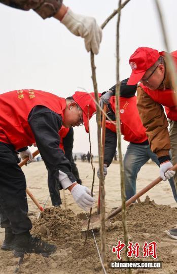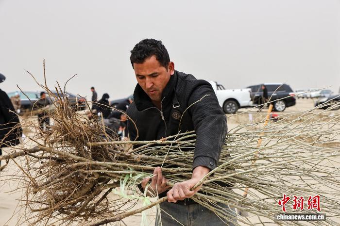 中新网新疆和田3月14日电 (曹紫涵)连日来,在新疆塔克拉玛干沙漠边缘的和田地区各县市,一场声势浩大的春季植树造林行动正如火如荼展开。
