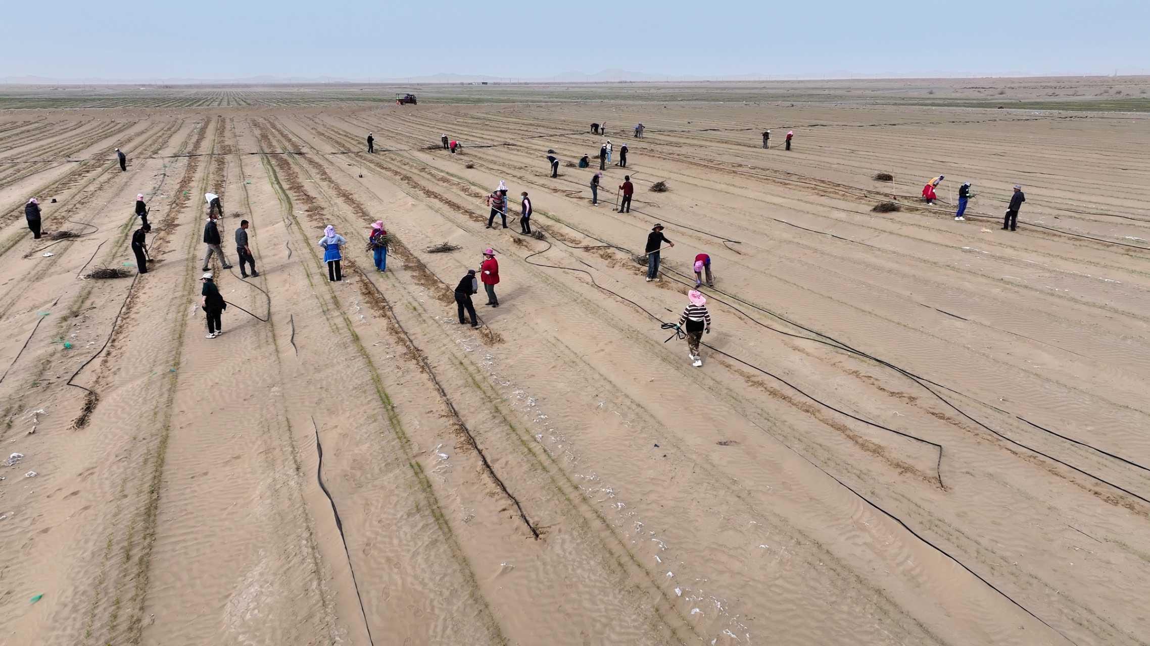 这几天,随着气温回升,塔克拉玛干沙漠南缘的于田县万亩玫瑰种植基地里,沉寂一冬的枝条悄然萌出新芽。花农们抢抓农时,正忙着清沙、修剪、扶苗,一幅“人勤春来早”的画卷在沙漠边缘铺开。