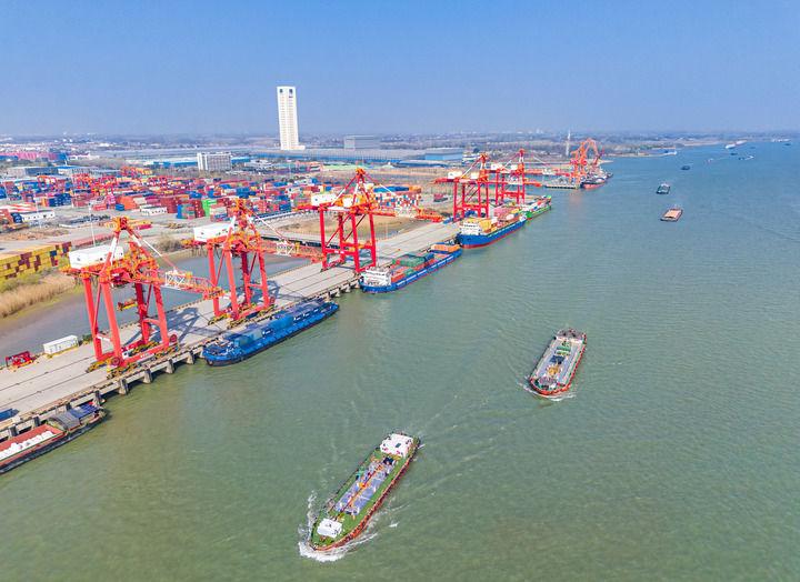 2026年3月10日拍摄的江苏扬州港(无人机照片)。新华社发(任飞摄)