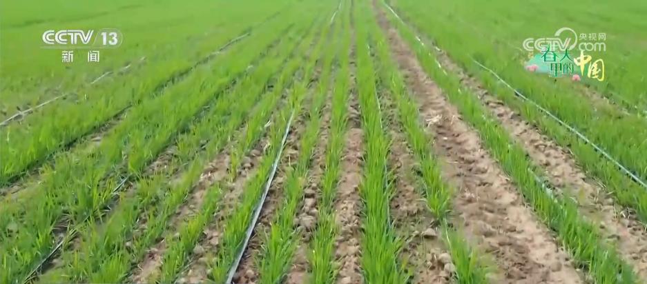 除了空中巡检,工人师傅还加紧铺设水肥一体化滴灌带,这套滴灌系统和田间安装的土壤墒情监测仪、微型气象仪联动作业,能够自动调控“高频微灌”模式,把配比好的水肥,定时、定量送到地下20厘米的小麦根系活跃层,有效促进小麦根系生长。