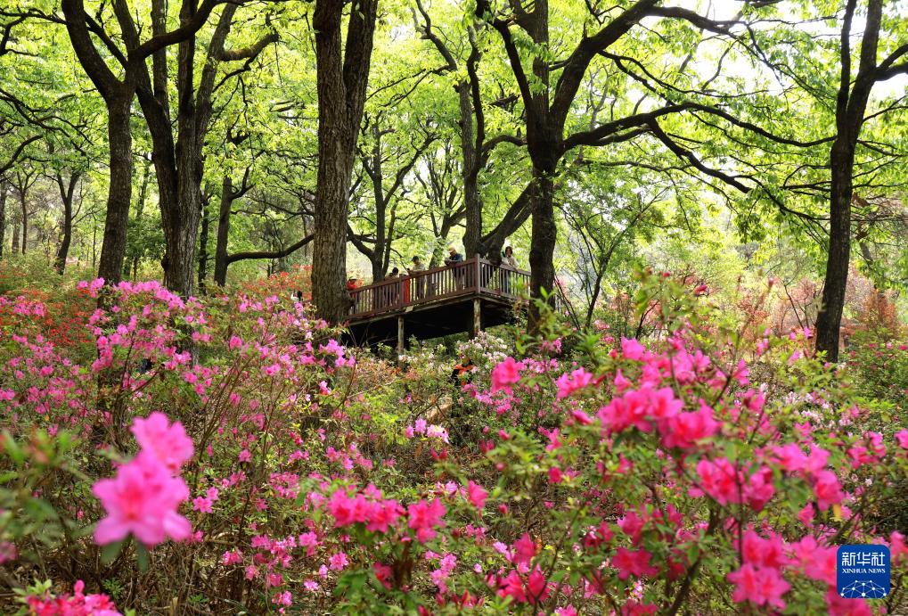 3月21日,游客在云南省昆明市盘龙区黑龙潭公园观赏杜鹃花。