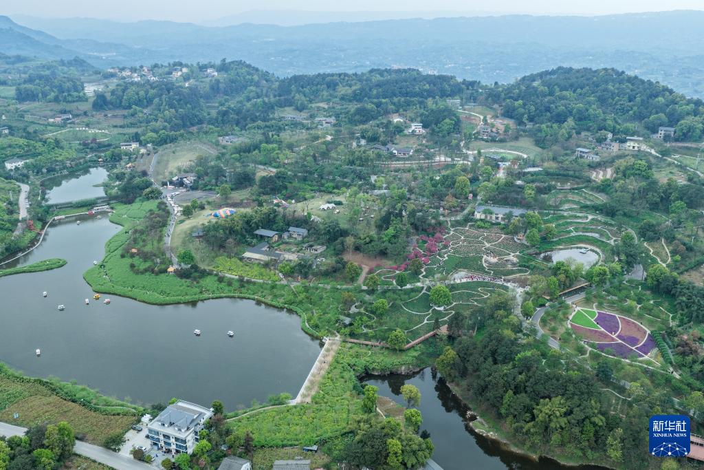 这是3月22日拍摄的重庆市巴南区二圣镇集体村云林天乡景区(无人机照片)。