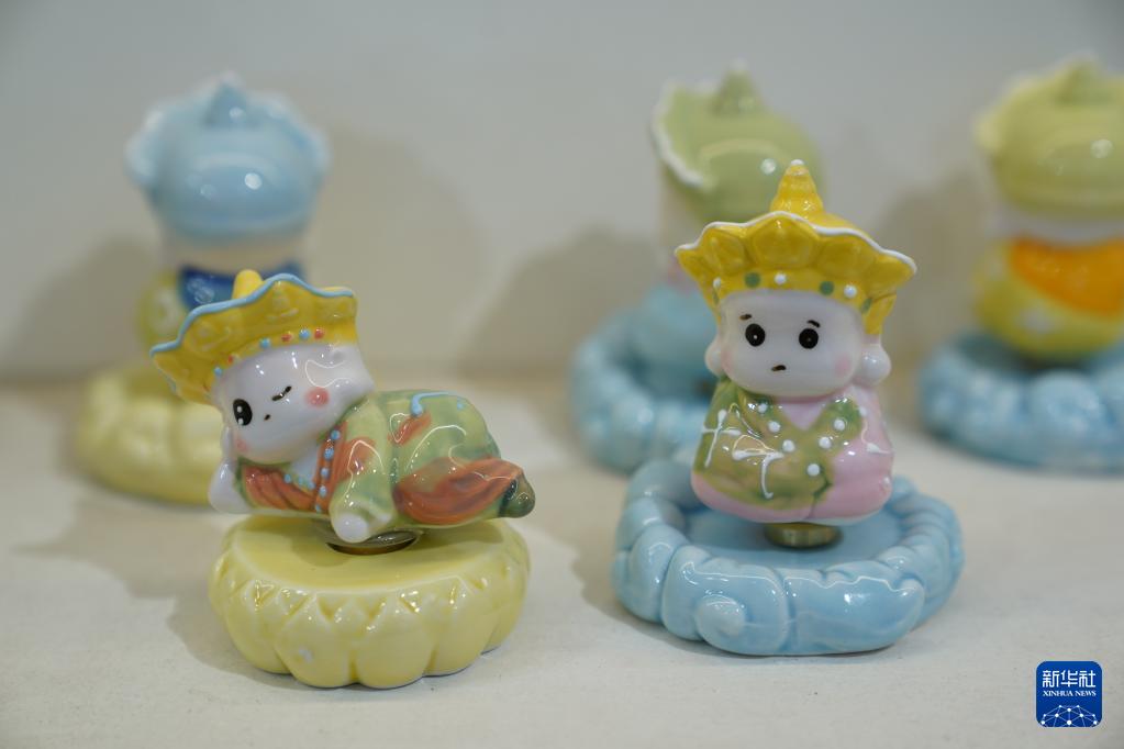 这是曾锐工作室设计生产的“无语佛”系列文创产品(3月12日摄)。