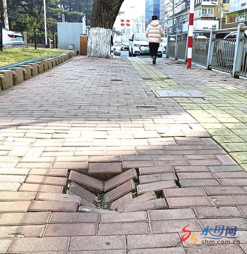 烟台民意通|人行道凹陷成10厘米深坑 市民:存在安全隐患