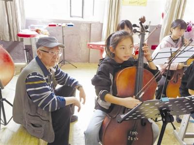 傅慧勤和老伴赵第军一起到玉兰小学与孩子们在一起,为他们做音乐指导。