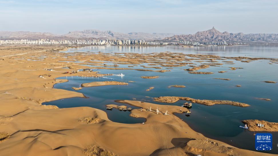 3月25日拍摄的乌海市乌海湖与沙漠美景(无人机照片)。