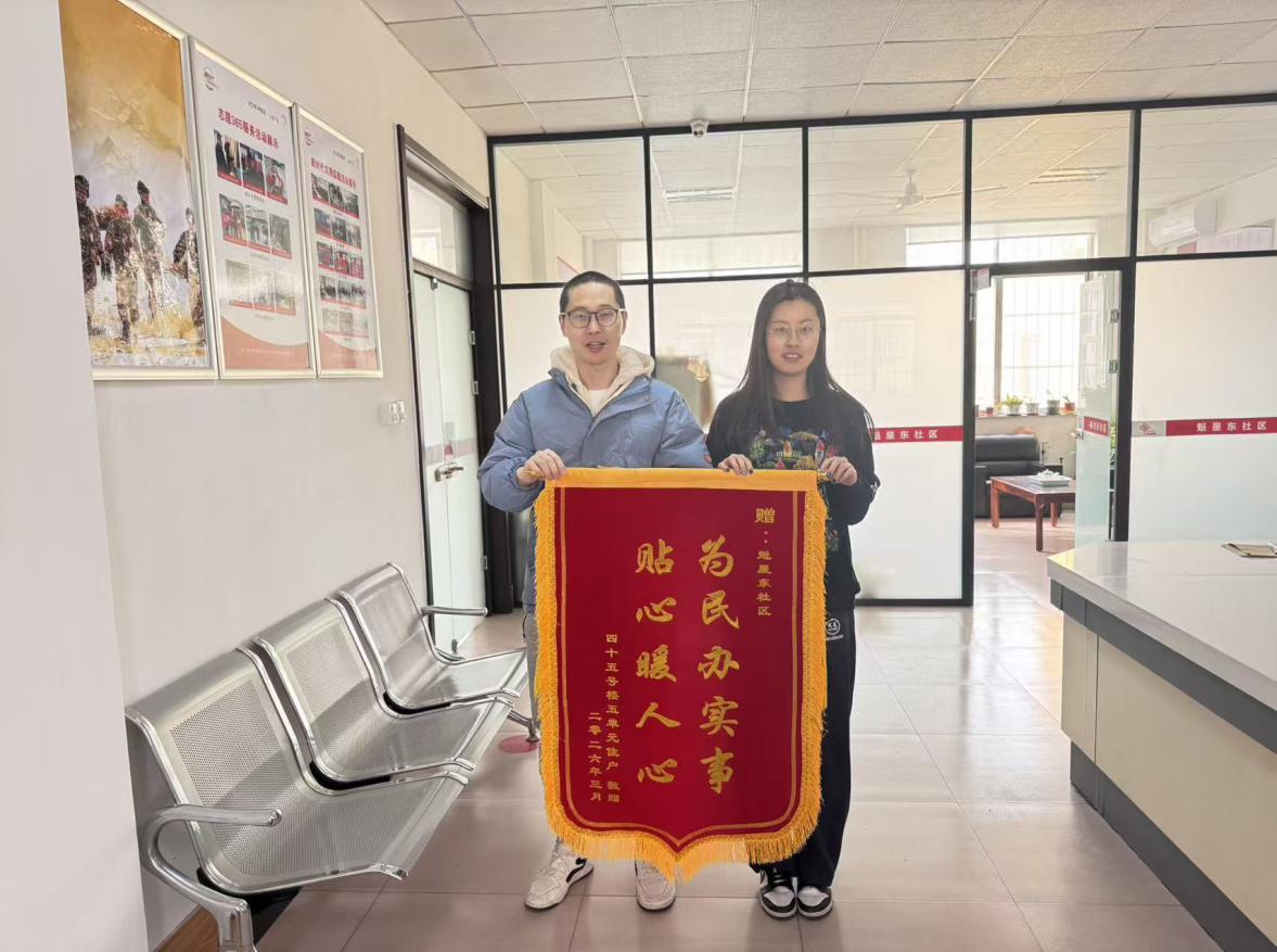 水母网3月27日讯 (通讯员 陈策 闫丽娜)近日,泉山街道魁星东区二区党群服务站迎来暖心一幕,辖区45号楼居民代表专程送来一面印有“为民办实事,贴心暖人心”的锦旗,字里行间满是感激,向街道、社区及相关部门全力推进污水管道改造、切实解决居民急难愁盼问题的务实举措,表达最诚挚的谢意。这面锦旗,既是居民对社区工作的认可,更是对民生服务落地见效的最好见证。