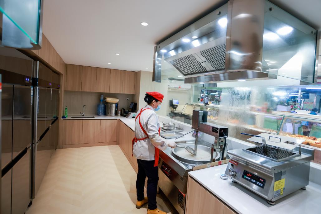 值得一提的是,本次升级采用了开放式明厨亮灶设计,现制产品的制作全过程透明可视。顾客站在柜台前,便能清晰看到厨师们规范的操作流程,从食材处理到成品出炉,每一个环节都尽收眼底。“以前买熟食,总担心后厨的卫生情况,现在看着师傅们干干净净地制作,吃着也更放心了。”现场一位老顾客的话,道出了不少消费者的心声。这种透明化的展示方式,不仅拉近了品牌与消费者之间的距离,更彰显了喜旺对食品安全的自信与担当。
