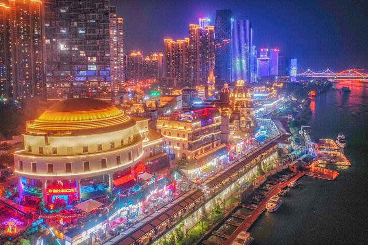 图为长沙渔人码头夜间消费场景。郭立亮 摄