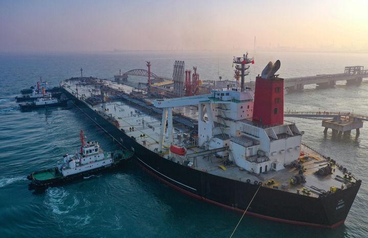 2025年12月18日,一艘装载着17.9万吨石化原辅料的船舶泊入国投洋浦油储码头30万吨级原油泊位(无人机照片)。这是海南自由贸易港正式启动全岛封关后洋浦港口岸第一批通关的“零关税”石化原辅料。新华社记者 郭程 摄