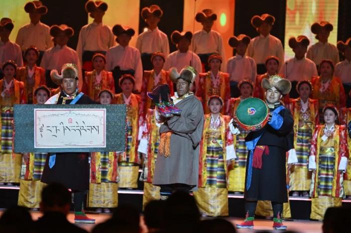 2026年3月27日晚,“盛世中国 幸福西藏”拉萨市纪念西藏百万农奴解放66周年群众合唱比赛,在拉萨市群众文化体育中心上演。图为拉萨市尼木县代表队演唱《美丽的西藏 可爱的家乡》。