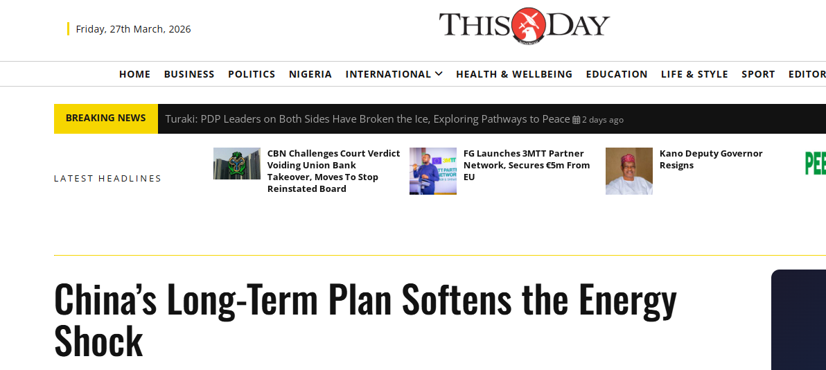 尼日利亚主流媒体《今日报》28日的报道说,中东局势恶化令全球能源市场陷入困境,多国在油价飙升中承受重压。在这场风暴中,有一个国家显得格外从容——中国。