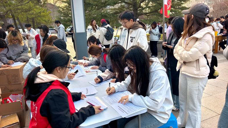 现场,学生志愿者代表还宣读了青年献血倡议书,号召更多同学加入到无偿献血队伍中来,用热血传递爱心,贡献青春力量。随后,山东医药大学学生志愿者面向签名墙签名,同时,部分学生现场登记并进行无偿献血、造血干细胞血样采集。不一会,学校南广场上,两辆献血车前就排起了长队。队伍中有不少新生面孔,记者了解到大一口腔学技术(听障)班虽然是第一次参与无偿献血活动,却几乎是全班出动,甚至有的男生寝室全寝室都前来参与无偿献血。“这已经是筛过一拨的人了,班上还有好多女生也想参与,但身体指标不达标,让我‘劝退’了。”班长李博文说。
