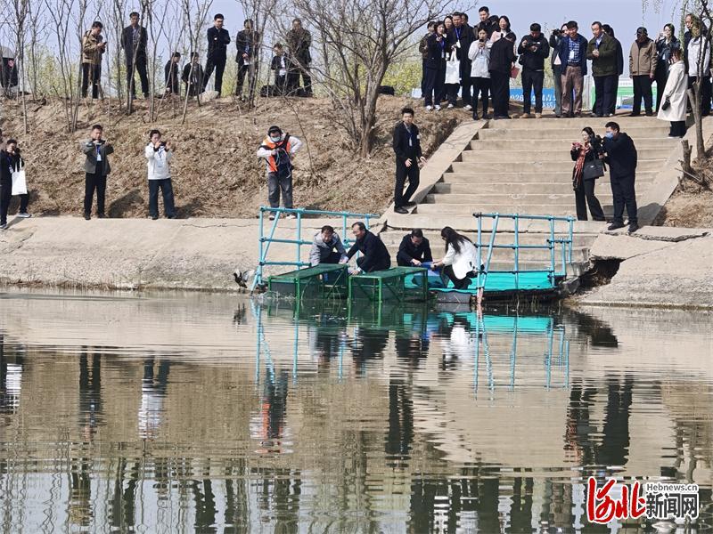 4月2日上午,全球首次青头潜鸭野化放飞活动在衡水湖举行。图为放飞现场。河北日报记者 焦磊 摄