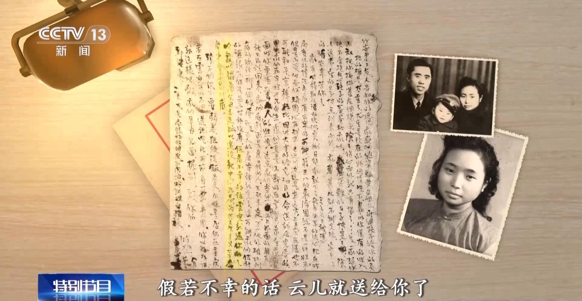 假若不幸的话,云儿就送给你了,盼教以踏着父母之足迹,以建设新中国为志,为共产主义革命事业奋斗到底。孩子们决不要骄(娇)养,粗服淡饭足矣。愿我们早日见面。握别。愿你们都健康。