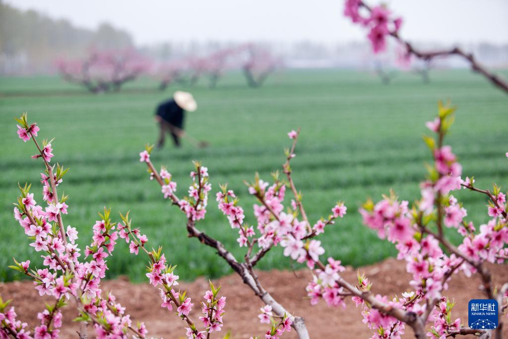 4月9日,在山东省淄博市高青县花沟镇,农民管护冬小麦。