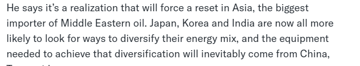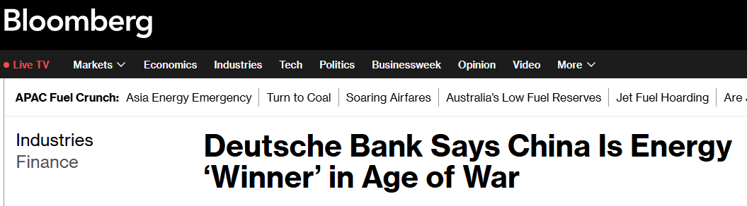文章认为,中国对电气化和战略石油储备建设的重视,使其更能抵御能源价格冲击,而对可再生能源的新一轮需求将大浪淘沙般筛选出清洁技术领域的赢家。文章援引德意志银行高管的话说,美以伊冲突给石油和天然气市场带来了极大的波动,全球能源安全竞赛正在使中国变得更加强大。这位高管说,从长远来看,“人人都知道”,世界“不能依赖石油”。这一认识将促使亚洲做出重大调整,因为亚洲是中东石油的最大进口地区。如今,日本、韩国和印度等国家都更倾向于实现能源结构的多元化,而实现这一目标所需的设备必将源于中国。