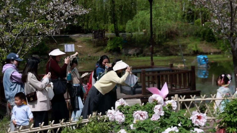 在浙江杭州余杭区仁和街道,一年一度的普宁村牡丹花会如期而至,吸引众多市民游客。