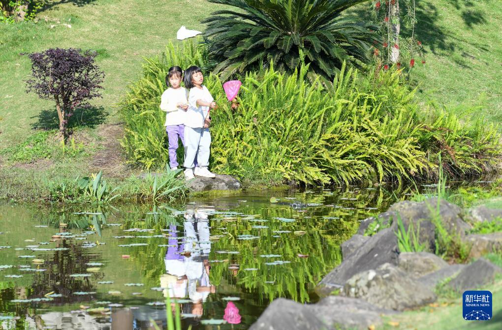 春日,重庆市荣昌区玉带河公园内绿意盎然、碧波相伴,众多市民与游客前来休闲观光,或漫步亲水步道,或驻足赏景拍照,呈现出一派和谐生动的春日景象。